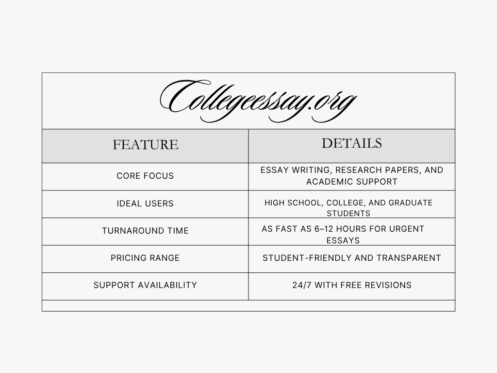 CollegeEssay.org isn’t just another writing platform — it’s a comprehensive academic support system built around students’ real needs. From first-year undergraduates to graduate-level researchers, it serves anyone seeking structured, high-quality writing assistance.
